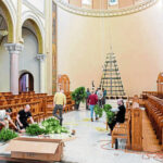The previous 30-foot artificial tree, purchased with money raised through the parish, was a centerpiece in the basilica apse for more than a decade but was retired about five years ago.