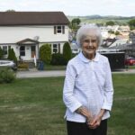 Eleanor Hamrock, 97, is pictured in the yard of her Youngwood home Thursday, Aug. 22, 2024. Hamrock was born in the home and lived there her entire life.