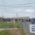 As the afternoon dragged on, the line continued to grow. Despite saying gates would open at 3 p.m., people weren’t allowed into the fairgrounds until 4:20 p.m., prompting several people to start chanting “Let us in.”