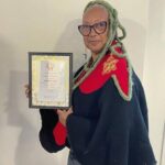 JunYetta Seale of East Liberty is pictured with the portable dry cleaning machine she received to care for her capes and hats through the Twilight Wish Foundation.