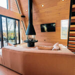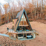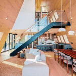 Comanici purchased the property after a friend realized his family’s dwelling there — formerly home to the Pine Terrace members club — could not be saved. American chestnut beams were preserved from that older structure, to be featured in the new A-frame.