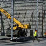 Workers from Arco National Construction build a massive, 300,000-square-foot beverage distribution center in Salem.