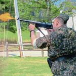 He displayed a number of World War II period and reproduction weapons he’s collected, including a British sniper rifle.