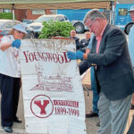 Most of the items pulled Friday from Youngwood’s 1999 centennial time capsule were souvenirs from that celebration or from earlier town milestones.