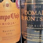 Blending the resulting grapes properly can create a seamless balance of ripeness and freshness. After fermentation in stainless steel tanks, this wine aged for 18 months in a combination of American and French-oak barrels of varying ages. The barrels impart spiciness, a Rioja red wine trademark. The wine’s ripe plum and berry fruit combine with freshness and spice to complement lamb stew brilliantly. Recommended.