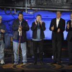 From left, "Star Wars" franchise creator George Lucas, cast members Billy Dee Williams and Mark Hamill, Walt Disney Co. Chairman and CEO Bob Iger and cast member Harrison Ford applaud onstage at a dedication ceremony in front of the Millennium Falcon during the Star Wars: Galaxy’s Edge Media Preview at Disneyland Park, Wednesday, May 29, 2019, in Anaheim, Calif.