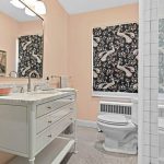 One of the full bath rooms has been redone with penny tiles — small tiles in round or hexagonal shapes — and a new shower.