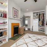 It has five decorative fireplaces, including one with the original cabinetry above it in the dining room.