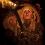 Dripping tar from burning torches stains the clothing and hats of people in the processions. De la Viuda made sure only Natalia’s eyes were exposed and told her to keep looking down as they walked so she wouldn’t get burned.