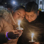 Supporters hold candles during a candlelight vigil on Tuesday, outside the Wisconsin Capitol in Madison, Wis., following a shooting at the Abundant Life Christian School on Monday.