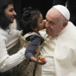 Pope Francis is kissed by a child during the weekly general audience at the Vatican, on Wednesday.
