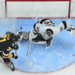 The Penguins’ Evgeni Malkin beats Kings goaltender Darcy Kuemper in the second period on Tuesday, at PPG Paints Arena.