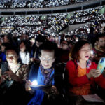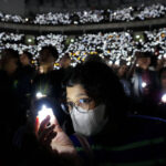 People hold electric candles as they sing during a Christmas Eve service at Indonesia Arena stadium in Jakarta, Indonesia, on Tuesday.