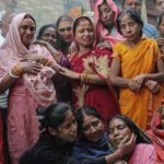 Juli, sister of Pankaj Sahni, who died in a deadly explosion near the historic Red Fort in the old quarters of Delhi, reacts next to their mother, Gayatri Devi, as Sahni’s body is brought to his residence ahead of the funeral, in New Delhi, India, on Tuesday.