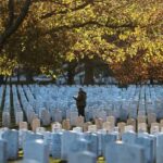 Vietnam veteran Harry Metzler touches the names of friends he lost during the Vietnam war, at the Vietnam Veterans Memorial on Veterans Day in Washington, on Tuesday.