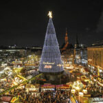 The traditional 45 meter high Dortmund Christmas tree, one of the world’s largest, is illuminated for the first time this year at the Christmas market in Dortmund, Germany, Monday.