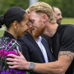 England cricket captain Ben Stokes performs a hongi at the Mihi Whakatau, a traditional teams welcome, on the field at Hagley Oval, ahead of the first cricket test against New Zealand in Christchurch, New Zealand, Tuesday.