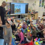 O’Hara Elementary Kindergarten teacher Alison Francis instructs during a Turkey-themed day at school on Monday.