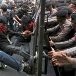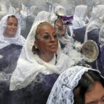 People take part in the procession of Senor de Los Milagros (Lord of Miracles), Peru’s largest religious celebration in New York City, on Sunday.