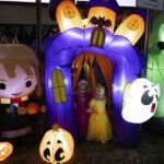 Twin sisters Annie Lagnese, and Nora Lagnese, left, both 2, exit a blow-up display at the annual Boo Bash on Wednesday, at Fox Chapel Area High School.