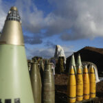 An Israeli soldier covered in a prayer shawl prays at a mobile artillery position, on Wednesday, in northern Israel.