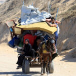 Displaced Palestinians fleeing northern Gaza move southward after Israeli forces ordered residents of Gaza City to evacuate, during an Israeli military operation, in the central Gaza Strip, on Tuesday.