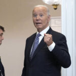 President Joe Biden speaks to reporters as he departs the Roosevelt Room of the White House on Monday, in Washington after speaking about the federal response efforts for Hurricane Helene.
