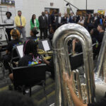 Harris told the students that she too played in the band — French horn, xylophone and kettle drums — and while not every note they play will be perfect, “all that practice makes for beautiful music.”