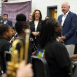 “We’re so proud of you and we’re counting on you,” Harris told the young crowd at Liberty County High School, some shrieking with excitement at the sight of the vice president. “Your generation … is what is going to propel our country into the next era of what we can do and what we can be.”