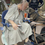 Marty Kedian greets his dog, Baxter, on his first trip outside the Mayo Clinic Hospital after his surgery in Phoenix, on March 16, 2024.