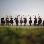 In this April 5, 2019, photo, Nepalese cavalry soldiers rehearse for the Ghode Jatra festival in Kathmandu, Nepal. The ‘Ghode Jatra’ is an annual horse festival celebrated on the Nepal Cavalry grounds in Kathmandu, which marks the defeat of a Hindu demon. The president of Nepal, diplomats, top officials and civilians all gather to watch 106 horses and more than 200 soldiers display warfare techniques which are believed to keep the demon away. The preparations of this event start three months prior, when a dedicated team of soldiers spend days bonding with the animals, by feeding and grooming the horses.