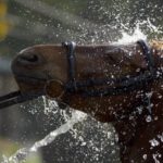 In this March 18, 2019, photo, an army man bathes a horse as he prepares the animal for Ghode Jatra festival at the Nepal cavalry ground in Kathmandu, Nepal. The ‘Ghode Jatra’ is an annual horse festival celebrated on the Nepal Cavalry grounds in Kathmandu, which marks the defeat of a Hindu demon. The president of Nepal, diplomats, top officials and civilians all gather to watch 106 horses and more than 200 soldiers display warfare techniques which are believed to keep the demon away. The preparations of this event start three months prior, when a dedicated team of soldiers spend days bonding with the animals, by feeding and grooming the horses.