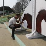 In this March 24, 2019, photo, a Nepalese army soldier draws a picture of horse for the Ghode Jatra festival in Kathmandu, Nepal. The ‘Ghode Jatra’ is an annual horse festival celebrated on the Nepal Cavalry grounds in Kathmandu, which marks the defeat of a Hindu demon. The president of Nepal, diplomats, top officials and civilians all gather to watch 106 horses and more than 200 soldiers display warfare techniques which are believed to keep the demon away. The preparations of this event start three months prior, when a dedicated team of soldiers spend days bonding with the animals, by feeding and grooming the horses.