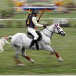 In this March 24, 2019, photo a Nepalese cavalry soldier rehearses for the Ghode Jatra festival in Kathmandu, Nepal. The ‘Ghode Jatra’ is an annual horse festival celebrated on the Nepal Cavalry grounds in Kathmandu, which marks the defeat of a Hindu demon. The president of Nepal, diplomats, top officials and civilians all gather to watch 106 horses and more than 200 soldiers display warfare techniques which are believed to keep the demon away. The preparations of this event start three months prior, when a dedicated team of soldiers spend days bonding with the animals, by feeding and grooming the horses.
