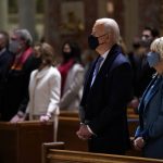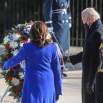 Biden and Harris later briefly touched the wreath before bowing their heads in prayer. The president also made the sign of the cross, then he and Harris stood somberly for the playing of taps.