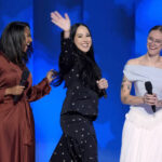A festive mood filled the United Center all evening, with a packed audience including running mate Tim Walz dancing and singing along to a mix of pop and classic rock. Two of Harris’ young grandnieces were brought onstage by actress Kerry Washington to remind the convention how to correctly pronounce her first name. At the girls’ direction, one side of the arena shouted “comma” and the other “la.”