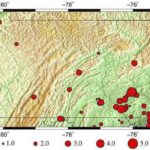 Map shows earthquakes in and near Pennsylvania from January 1970 to June 2015 reported by the U.S. Geological Survey.