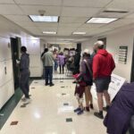 In neighboring Lehigh County, a steady stream of voters took advantage of the one-day extension Wednesday, descending to the basement office of the voter registration office in Allentown to apply for a mail-in ballot, fill it out and turn it in. County elections workers explained the process as voters stepped into a crowded hallway.