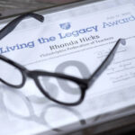 The Living the Legacy award given to Rhonda Hicks is shown at her home in Philadelphia, Thursday, July 20, 2023. The award is from the American Federation of Teachers in recognition of 30 years of exceptional leadership and union advocacy in support of women’s rights.