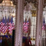 American flags are reflected in mirrors before former President Donald Trump speaks Tuesday at Mar-a-Lago in Palm Beach, Fla.