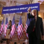 Former President Donald Trump gestures after announcing a third run for president at Mar-a-Lago in Palm Beach, Fla., Tuesday, Nov. 15, 2022. Former first lady Melania Trump is at left.