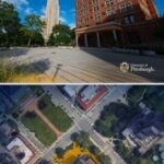 The plaza and walkway that were chosen wrap around two sides of the William Pitt Union, connecting pedestrians with the Cathedral of Learning through a crossing on Bigelow Boulevard.