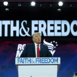 TRUMP: The former president has pledged to keep transgender men out of women’s sports and says he will ask Congress to pass a bill establishing that “only two genders,” as determined at birth, are recognized by the United States. He promises to “defeat the toxic poison of gender ideology.” As part of his crackdown on gender-affirming care, he would declare that any health care provider that participates in the “chemical or physical mutilation of minor youth” no longer meets federal health and safety standards and won’t get federal money. He’d take similarly punitive steps in schools against any teacher or school official who “suggests to a child that they could be trapped in the wrong body.” Trump would support a national prohibition of hormonal or surgical intervention for transgender minors and bar transgendered people from military service.