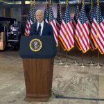 “Two years ago I began my campaign here in Pittsburgh, saying I was running to rebuild the backbone of America. And today I return as your president to lay out the vision of how I believe we do that,” Biden said early in his remarks, which began around 4:40 p.m. and lasted about a half hour. “The American Jobs Act will modernize 20,000 miles of highways, roads and main streets that are in difficult, difficult shape right now. … We’ll also repair 10,000 bridges … and (fund) desperately needed upgrades to unclog traffic, keep people safe and connect our cities, towns and tribes.”
