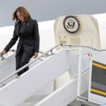 Democratic presidential nominee Vice President Kamala Harris arrives on Air Force Two Wednesday to campaign in Pittsburgh.