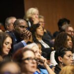 Elizabeth Pagel-Hogan, 49, of Ross Township, a children’s author, was invited to the speech but found the theater was filled as she waited in line.