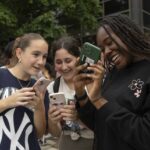 Supporters of Democratic presidential nominee Vice President Kamala Harris share their videos of Harris while she was leaving the Philip Chosky Theater on the Carnegie Mellon University campus Wednesday.