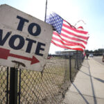 Eric Suter-Bull holds a Vote Uncommitted sign outside a voting location at Saline Intermediate School for the Michigan primary election in Dearborn, Mich., Tuesday, Feb. 27, 2024. Michigan is the last major primary state before Super Tuesday and a critical swing state in November’s general election.
