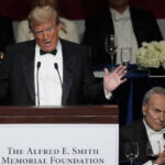NEW YORK — Former President Donald Trump laced into Vice President Kamala Harris and other Democrats on Thursday in a pointed and at times bitter speech as he headlined the annual Al Smith charity dinner in New York.