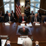 The poster sat, without explanation, in the middle of the Cabinet Room table at the meeting, in which lasted over an hour and Trump talked about the government shutdown, the holidays at the White House, and a little about Iran.